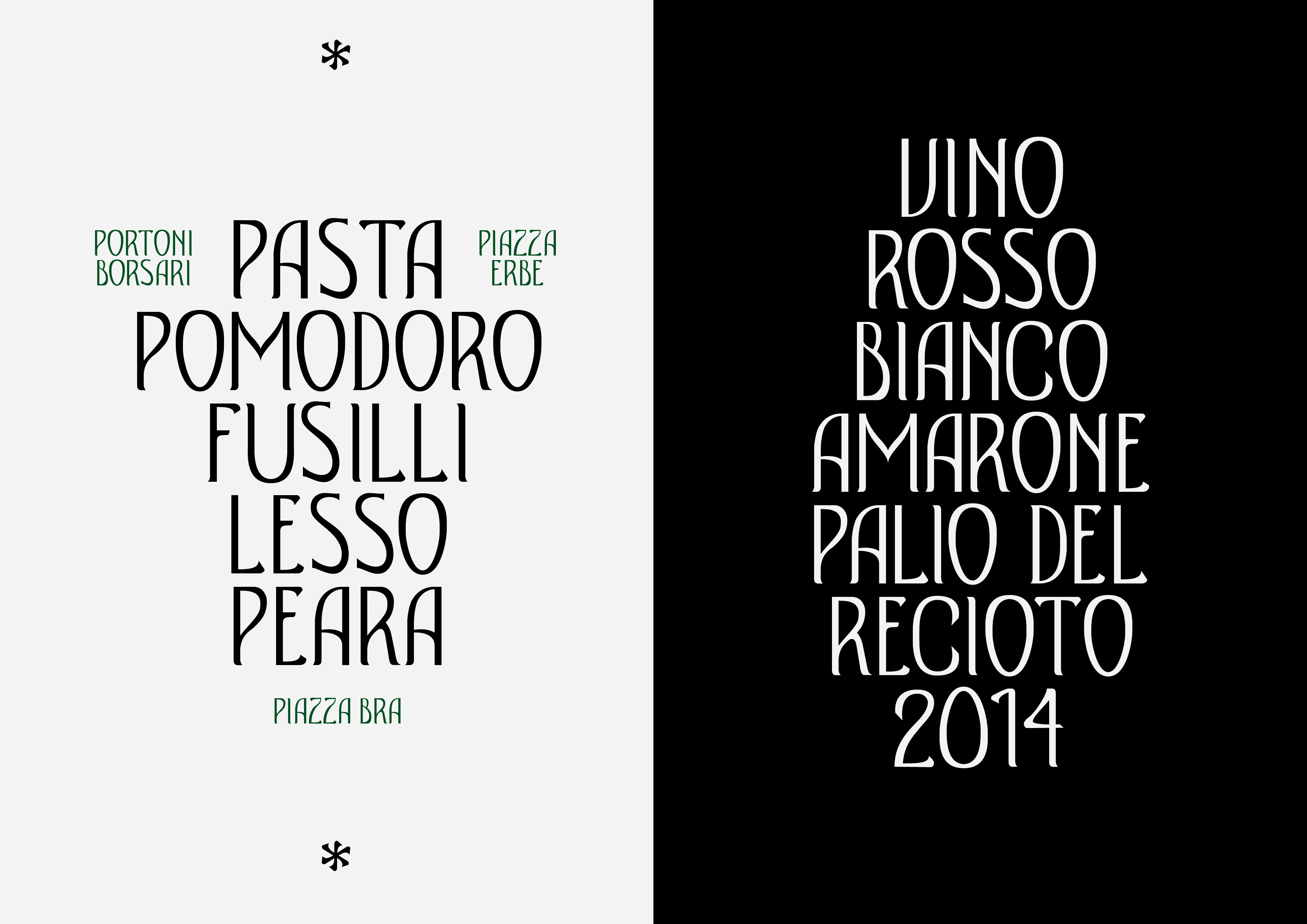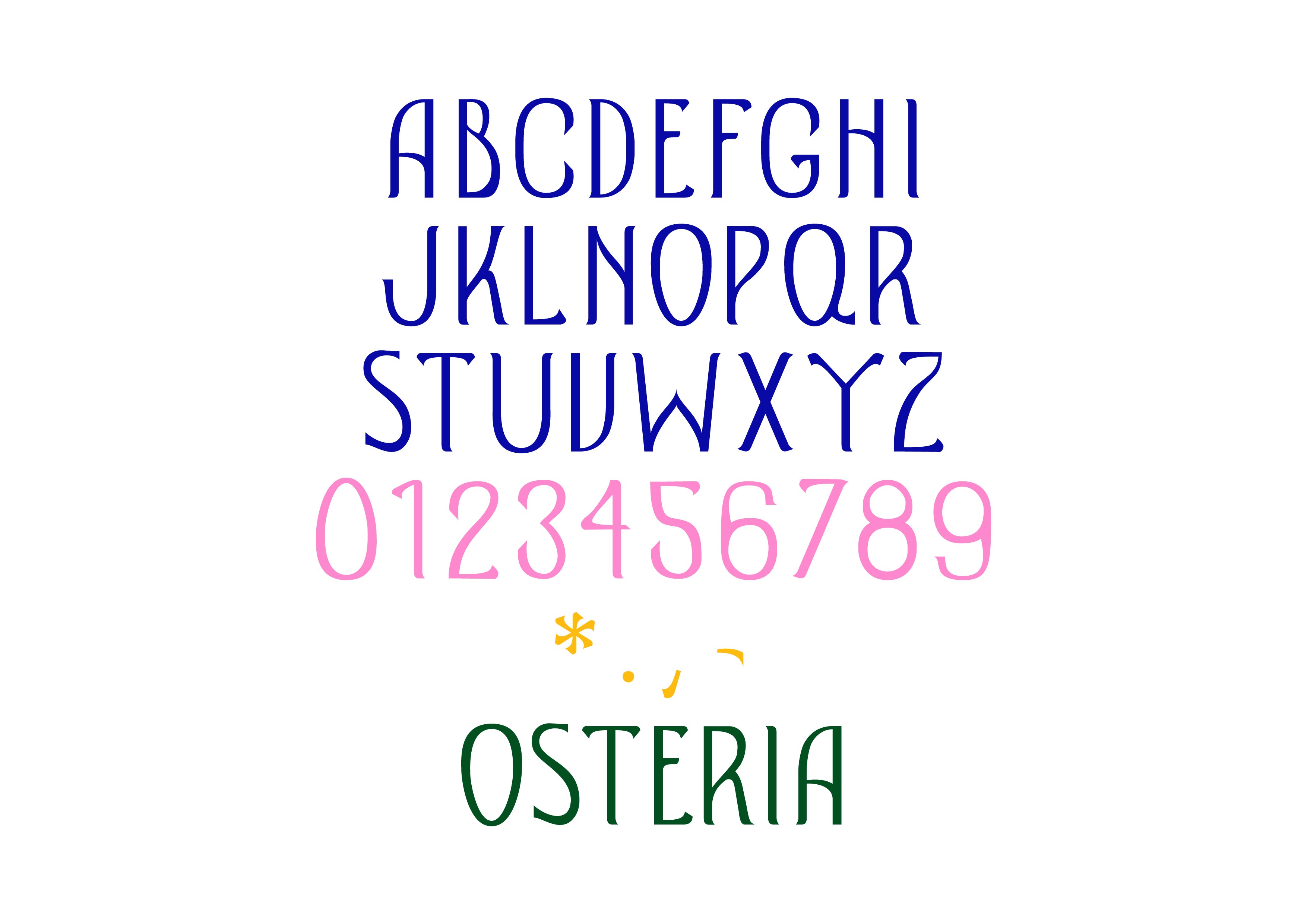 Il progetto ST Osteria nasce da uno studio approfondito dei caratteri tipografici utilizzati nei piccoli esercizi commerciali e nelle osterie storiche della città di Verona. In un’epoca in cui l’identità locale rischia di essere omologata, abbiamo voluto catturare e preservare lo spirito autentico di questi luoghi trasformandolo in una forma tipografica.